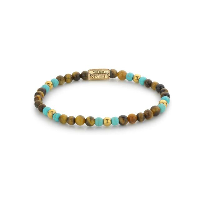 More balls than most Bracelet Rebel & Rose More Balls Than Most - 4mm - en plaqué or, œil de tigre et turquoises
