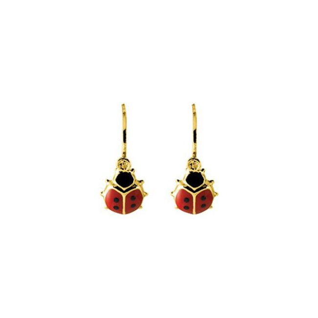 Boucles d'oreilles pendantes coccinelles en or jaune